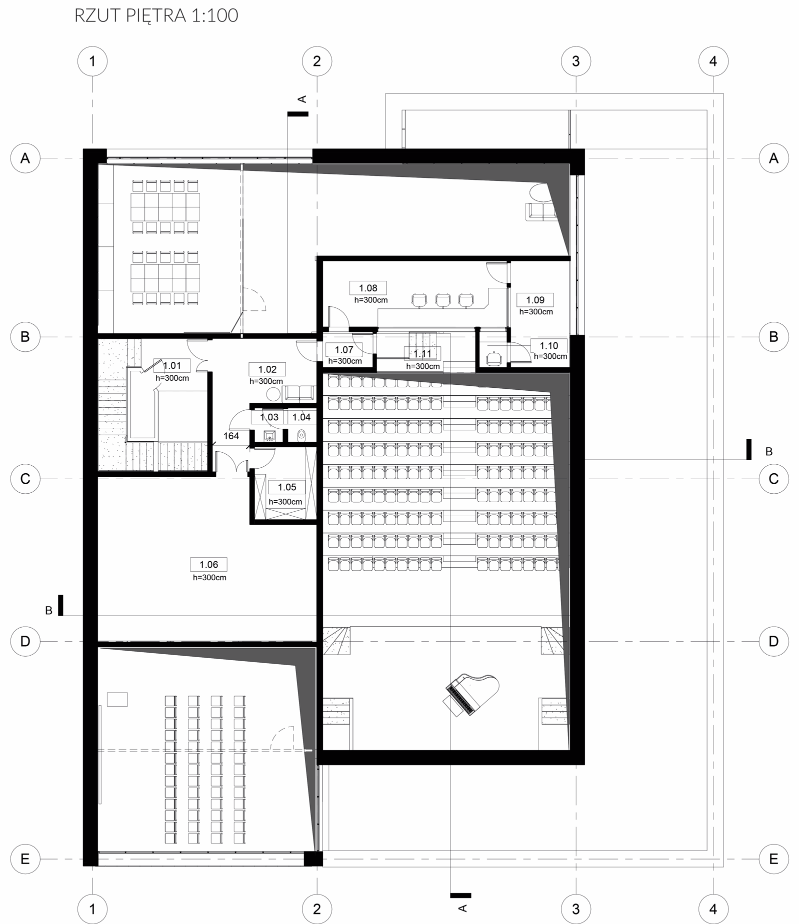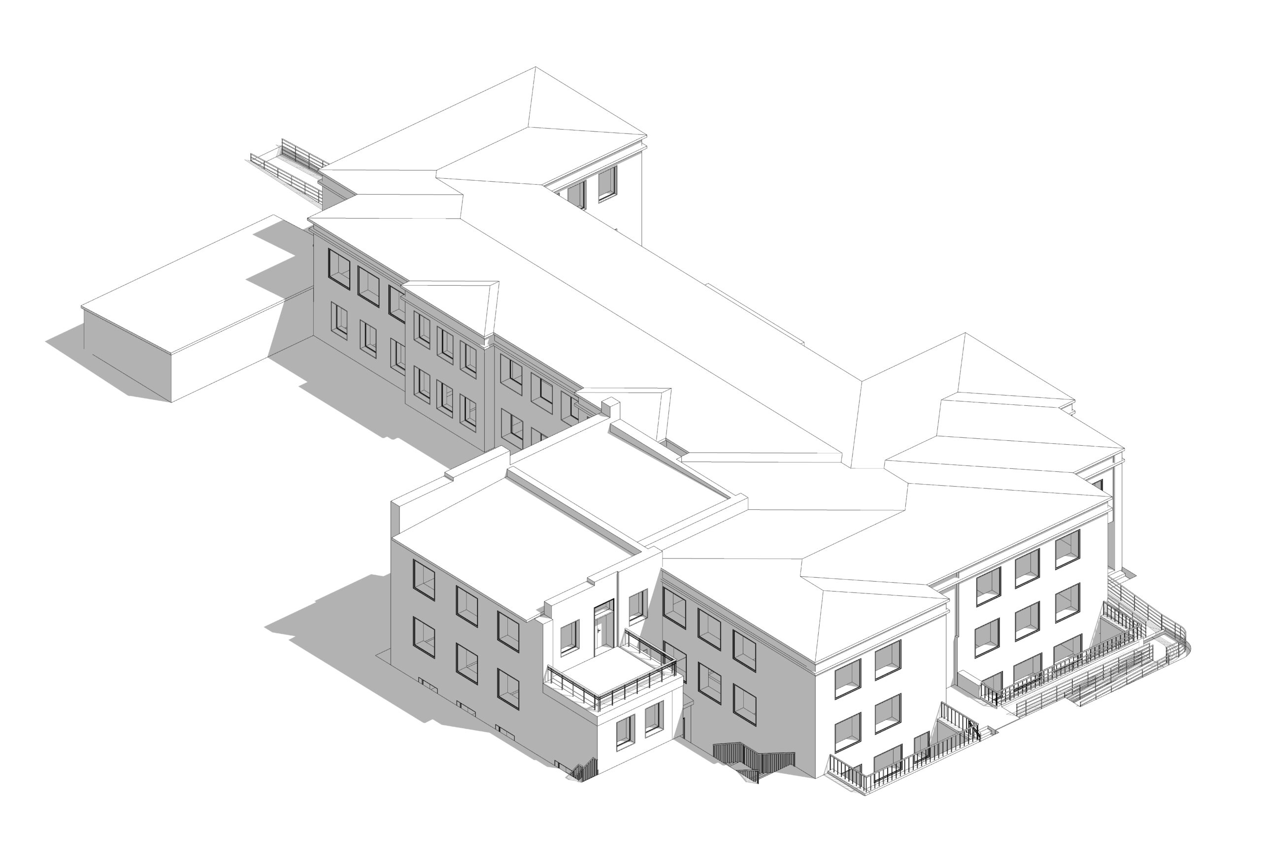 Projektowana nadbudowa o funkcji biurowo-socjalnej. Nowa część podzielona na dwie strefy, które kaskadowo schodzą do południowej granicy budynku. Pierwsza część, wyższa, łączy się z istniejącym budynkiem na wysokości 2 piętra; druga część, niższa, nadbudowana jest bezpośrednio nad Salą Kameralną. Zwieńczeniem nadbudowy są zielone dachy. Nadbudowa styka się bezpośrednio z budynkiem mieszkalnym po wschodniej stronie uzupełniając pustą przestrzeń widoczną z poziomu ulicy.